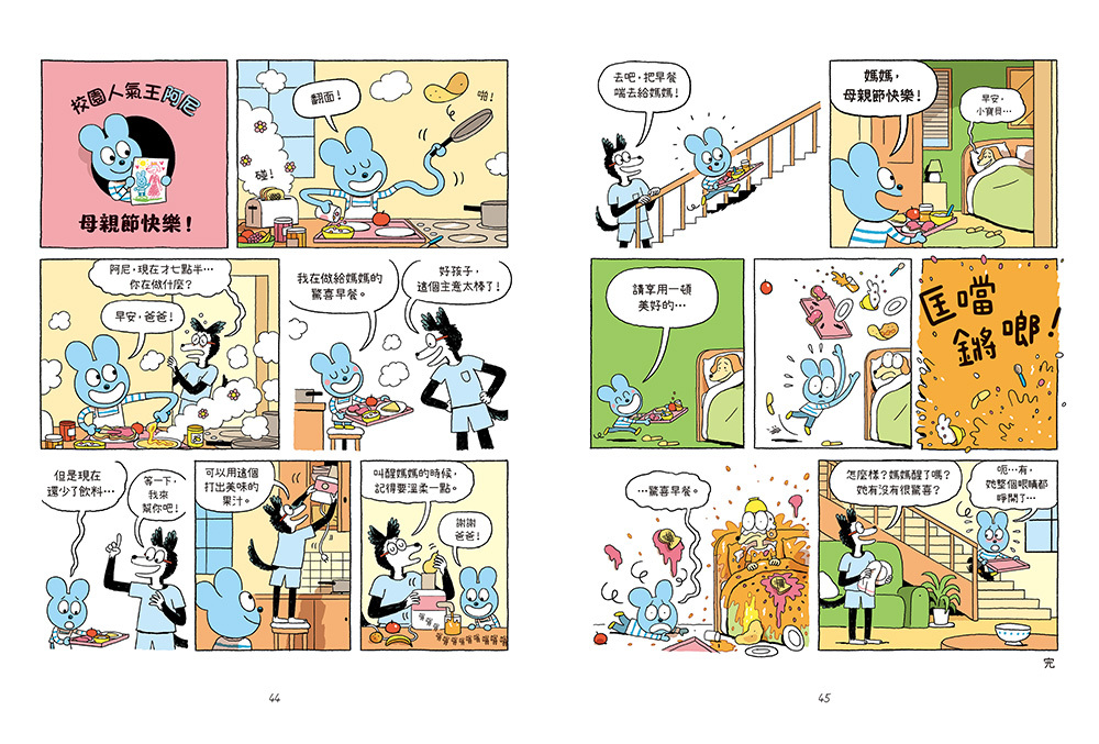 哈哈~~阿尼也太好笑了吧!我剛吃飯差一點噴飯呢!第一篇忘記帶點心就很好笑,還有一篇母親節早餐,我真的就大笑出來!不過,阿尼的好笑中隱含著自我認同,誇張中帶著與他人相處的包容與尊重,協助孩子以嶄新的角度看見自己與他人的互動。開心閱讀到這樣的題材,陰雨天氣容易讓人心情悶,一讀就整個開懷。書上要加一個警語:閱讀時請確保旁邊沒有人,否則很容易狂笑而引起側目!──小兔子書坊(獨立書店店主)