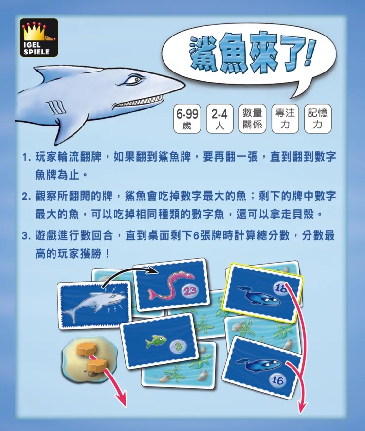 規格:1片沙灘底板;10個立體木製貝殼;7張鯊魚牌;29張數字魚牌,包裝尺寸: 15.5 x 10.7 x 2.8 cm,重量:140g